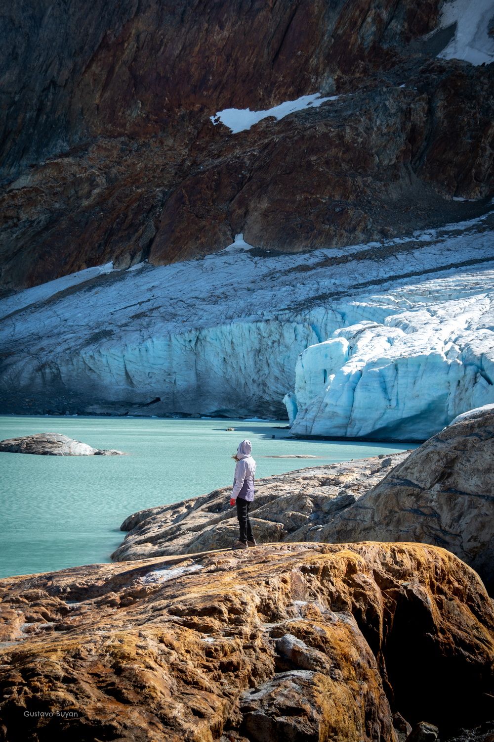 El tramo final exige seguir la morréna frontal hasta la base del glaciar, donde la vista es inmejorable.